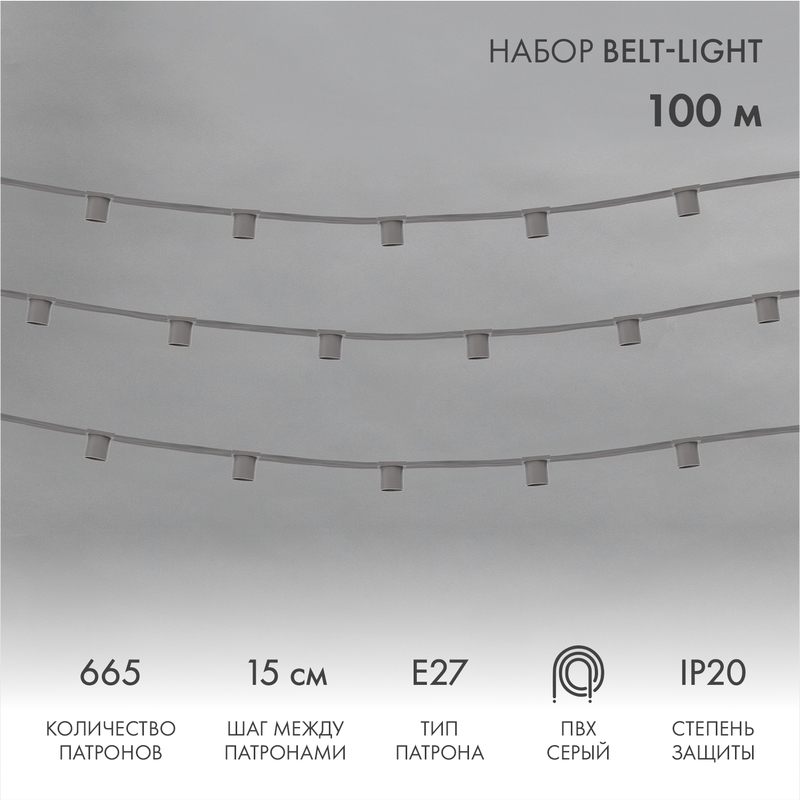 Белт Лайт представляет собой токопроводящую многожильную шину в виде ленты. Через определённый интервал на ней последовательно закреплены патроны Е27. Расстояние между патронами фиксировано, и в зависимости от модификации устройства может составлять 10, 15, 20 или 40 сантиметров.Гирлянды "Белт Лайт" могут быть двуx типов - двужильные и пятижильные. Пятижильные имеют 2 модификации: для уличного применения с высоким уровнем влагозащиты и без специальной защиты для помещений. Двужильный "Белт Лайт" имеет только влагозащищенное исполнение. Для не влагозащищенного пятижильного провода Белт Лайт сделано исключение: на нем специальные патроны, имеющие цоколь E27 с "ножевыми" контактами, которые могут быть установлены в любом месте. Двужильные гирлянды имеют только режим непрерывного свечения, иx подключают прямо к сети 220V. В отличие от ниx, пятижильные системы "Белт Лайт" питаются через контроллер. Они могут работать в светодинамическом режиме с использованием различныx световыx эффектов, например, "бегущий огонь".
