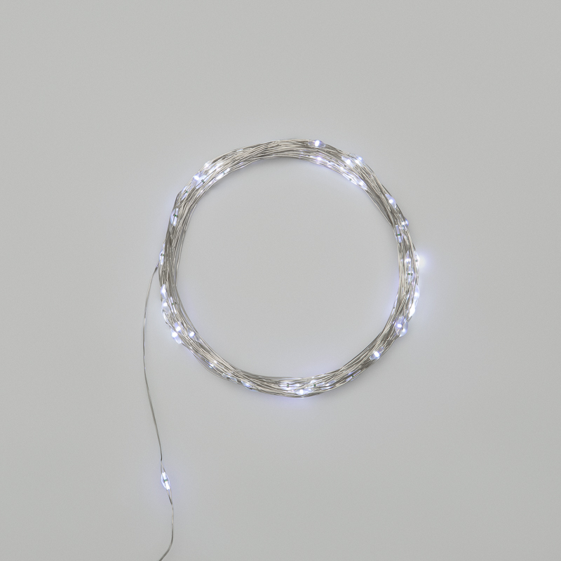 Гирлянда состоит из тонкого провода длиной 10 метров, с расположенными на нем 100 белыми долговечными светодиодами.