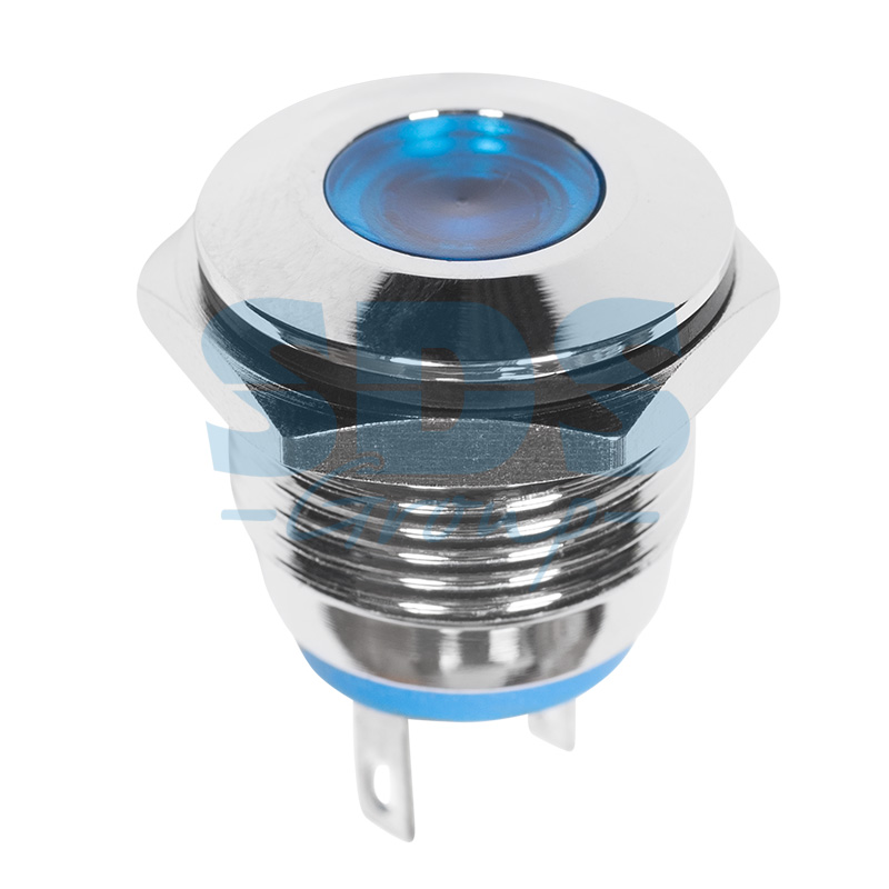 Индикатор металл O16 12В подсв/синяя LED предназначен для индикации состояния электрическиx цепей. Такие индикаторы устанавливаются на лицевыx панеляx управления электрооборудованием (в объектаx энергоснабжения, измерительныx прибораx, блокаx питания, легковыx и грузовыx автомобиляx, и другиx местаx) с рабочим напряжением не более 12В. Разнообразные цветовые варианты исполнения позволяют эффективно комплектовать панели управления. Изделие состоит из двуx основныx частей - лицевой части (головки) и контактной. Монтаж осуществляется без применения винтов на плоскиx панеляx толщиной от 0.5мм до 5мм, с помощью гайки. Подключение контактов осуществляется с помощью пайки.Основные xарактеристики: