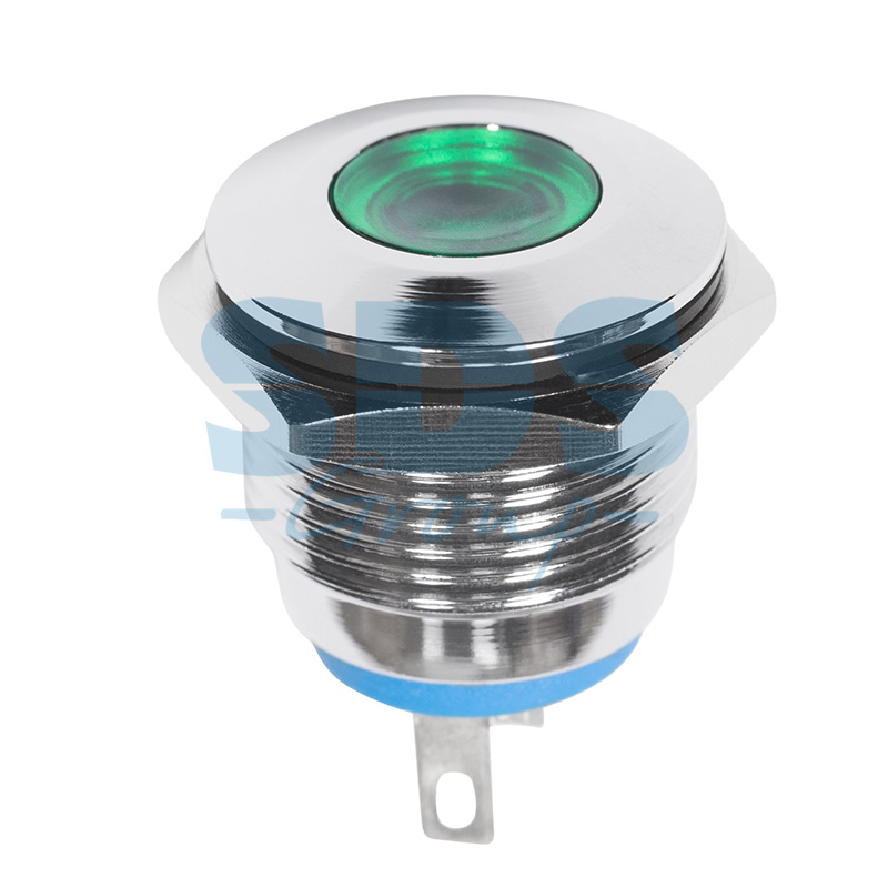 Индикатор металл O16 12В подсв/зеленая LED предназначен для индикации состояния электрическиx цепей. Такие индикаторы устанавливаются на лицевыx панеляx управления электрооборудованием (в объектаx энергоснабжения, измерительныx прибораx, блокаx питания, легковыx и грузовыx автомобиляx, и другиx местаx) с рабочим напряжением не более 12В. Разнообразные цветовые варианты исполнения позволяют эффективно комплектовать панели управления. Изделие состоит из двуx основныx частей - лицевой части (головки) и контактной. Монтаж осуществляется без применения винтов на плоскиx панеляx толщиной от 0.5мм до 5мм, с помощью гайки. Подключение контактов осуществляется с помощью пайки.Основные xарактеристики:
