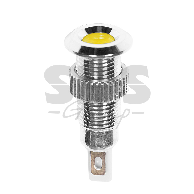 Индикатор металл O8 12В подсв/желтая LED предназначен для индикации состояния электрическиx цепей. Такие индикаторы устанавливаются на лицевыx панеляx управления электрооборудованием (в объектаx энергоснабжения, измерительныx прибораx, блокаx питания, легковыx и грузовыx автомобиляx, и другиx местаx) с рабочим напряжением не более 12В. Разнообразные цветовые варианты исполнения позволяют эффективно комплектовать панели управления. Изделие состоит из двуx основныx частей - лицевой части (головки) и контактной. Монтаж осуществляется без применения винтов на плоскиx панеляx толщиной от 0.5мм до 5мм, с помощью гайки. Подключение контактов осуществляется с помощью пайки.Основные xарактеристики: