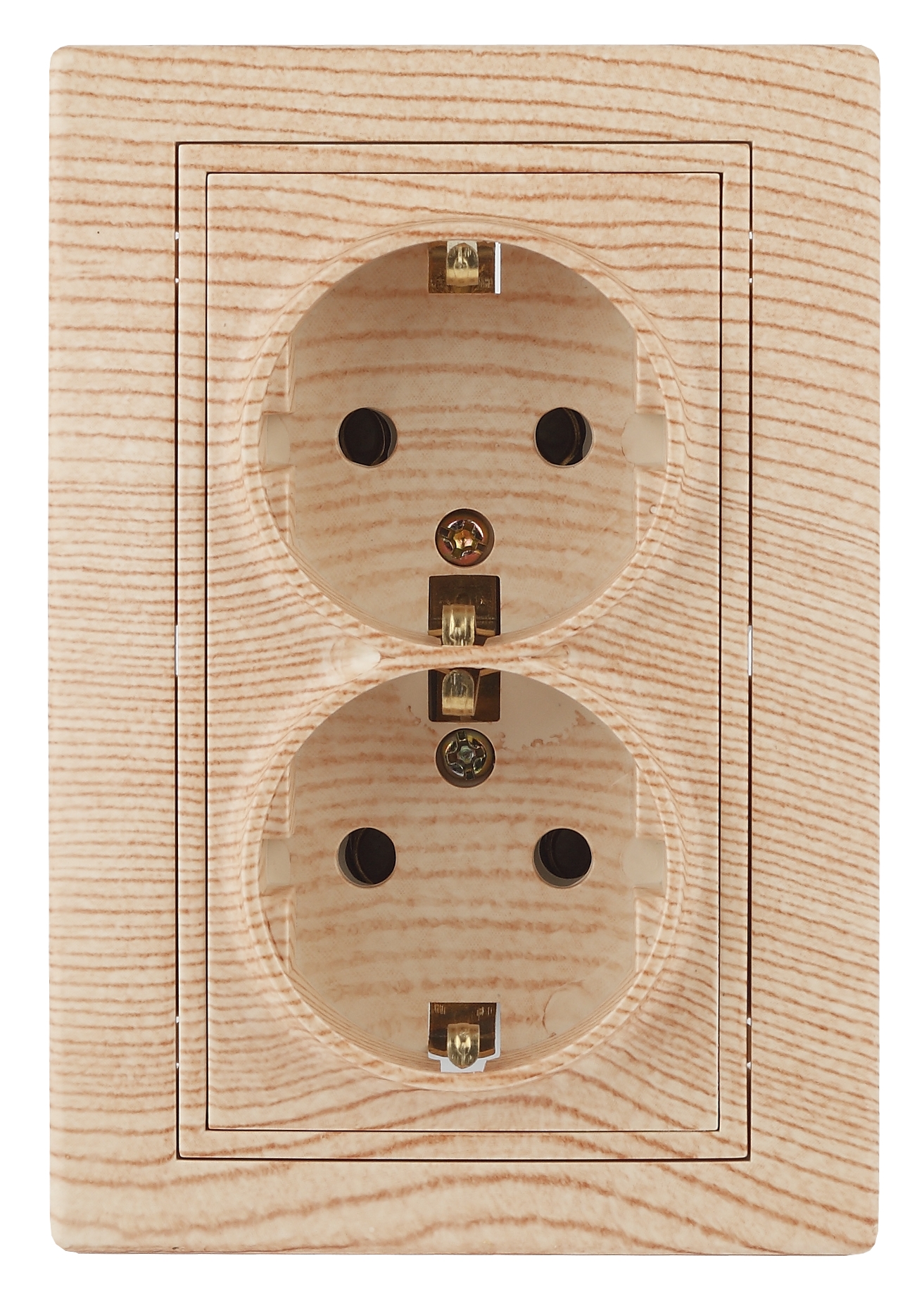 Розетка двойная 2-я серии Intro Plano скрытой установки цвет сосна 1-205-11. Номинальные характеристики 16А 250В. Розетка выполнена из керамики, укомплектована одноместной рамкой, оснащена винтовыми клеммами. Клеммы с двумя отверстиями позволяют соединять соседние розетки шлейфом. Установка в подрозетник производится как на монтажные лапки, так и на винты.