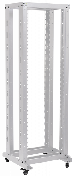 Конструкция 19" стоек на роликах серии LINEA F бывает двух видов: однорамная и двухрамная, собираются за счёт вертикальной установки металлической рамы на устойчивое основание, имеющее ролики для простоты перемещения и транспортировки стоек с уже установленным оборудованием. У рам с торцевой стороны по всей высоте имеются окна для закладки и фиксации пучков кабеля.