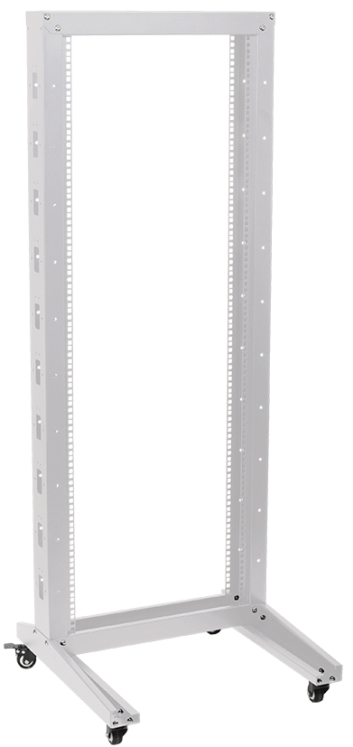 Конструкция 19" стоек на роликах серии LINEA F бывает двух видов: однорамная и двухрамная, собираются за счёт вертикальной установки металлической рамы на устойчивое основание, имеющее ролики для простоты перемещения и транспортировки стоек с уже установленным оборудованием. У рам с торцевой стороны по всей высоте имеются окна для закладки и фиксации пучков кабеля.