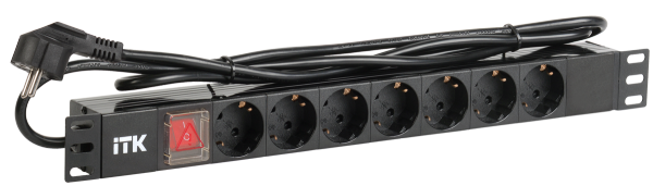 ITK PDU 7 розеток нем. ст, с LED выкл,1U, шнур 2м вилка нем