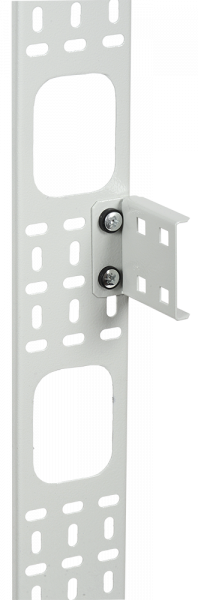 Вертикальные кабельные органайзеры крепятся за горизонтальные боковые планки и стойки внутри шкафа, а также за вертикальные монтажные профили таким образом, чтобы не задействовать полезную монтажную высоту шкафа. Во всех шкафах органайзеры крепятся параллельно боковым стенкам, а в шкафах шириной 800 мм органайзер возможно установить параллельно передней двери вдоль вертикальных профилей. Монтаж осуществляется с помощью крепежа винт-шайба-гайка.
