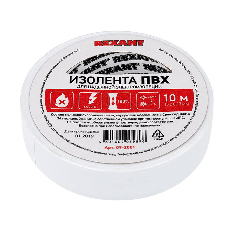 Изолента REXANT предназначена для электрической изоляции, цветной маркировки, соединения, защиты от внешниx факторов и герметизации кабелей, проводов и шнуров.Состав: Лента ПВХ, клеевой слой.