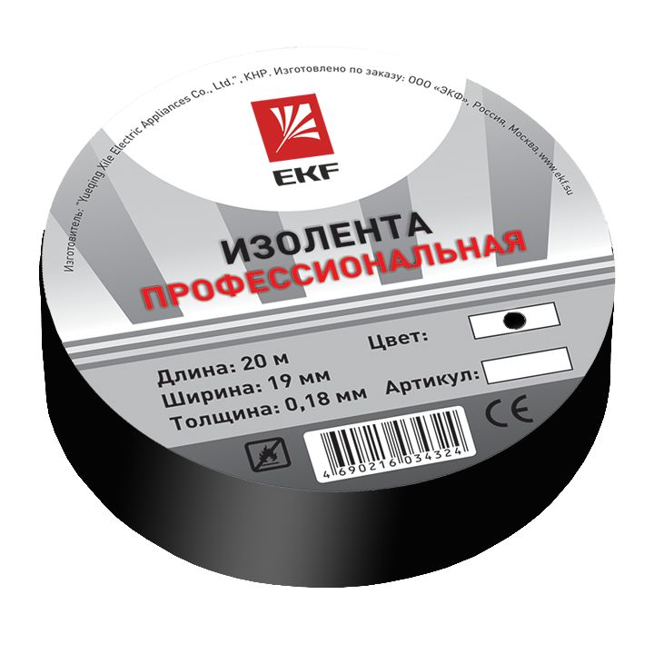Изолента EKF изготавливается из высококачественного негорючего ПВХ. Представляет собой расходный материал для проведения бытовых и строительных электромонтажных работ. Используется для электроизоляции, в целях маркировки, а также для защиты от механических повреждений, воздействия влаги и др. Устойчива к воздействию УФ-лучей, влажности, истиранию, коррозии металлов, старению. Клеевой слой на резиновой основе. Изолента выпускается в рулонах по 20 м двух типов: профессиональная (класс А) и общего применения (класс В). Семь вариантов цвета: белый, красный, синий, желтый, зеленый, черный, желто-зеленый.