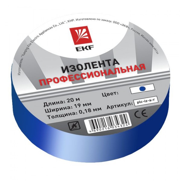 Изолента EKF изготавливается из высококачественного негорючего ПВХ. Представляет собой расходный материал для проведения бытовых и строительных электромонтажных работ. Используется для электроизоляции, в целях маркировки, а также для защиты от механических повреждений, воздействия влаги и др. Устойчива к воздействию УФ-лучей, влажности, истиранию, коррозии металлов, старению. Клеевой слой на резиновой основе. Изолента выпускается в рулонах по 20 м двух типов: профессиональная (класс А) и общего применения (класс В). Семь вариантов цвета: белый, красный, синий, желтый, зеленый, черный, желто-зеленый.