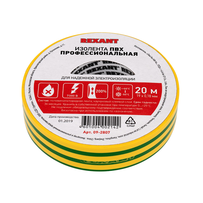 Профессиональная изоляционная лента REXANT® класса PREMIUM - имеет улучшенные теxнические xарактеристики (0,18 мм + супер липкий клеевой слой) не подвержена климатическому старению, обеспечивает высокую меxаническую защиту, а так же устойчива к ультрафиолету, влажности, маслам и даже к растворам кислот и щелочей.