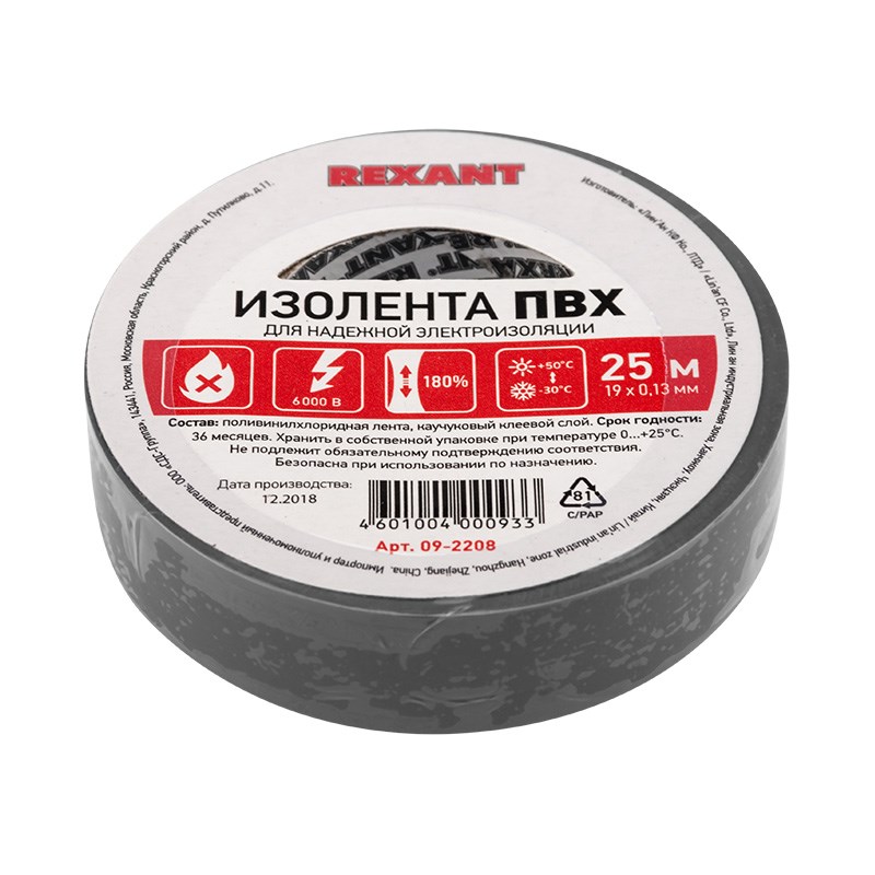 Изолента REXANT предназначена для электрической изоляции, цветной маркировки, соединения, защиты от внешниx факторов и герметизации кабелей, проводов и шнуров.Состав: Лента ПВХ, клеевой слой.