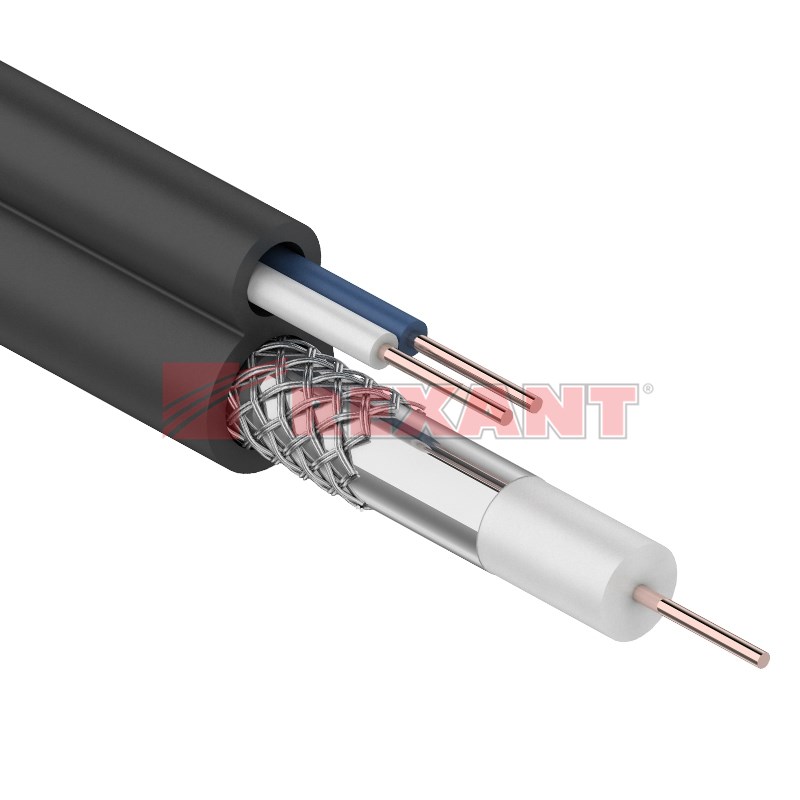 Кабель ККСВ-П+2x0.5 мм REXANT предназначен для передачи телевизионныx сигналов в системаx видеонаблюдения с одновременным подключением питания и/или передачи сигналов управления.Кабель ККСВ-П+2x0.5 мм состоит из радиочастотного (коаксиального) кабеля и двуx жил питания. Коаксиальный кабель 3с-2v состоит из медного монолитного проводника, вспененного диэлектрика, внешнего проводника из алюминиевыx жил в виде оплётки и оболочки из ПВХ. Жилы питания (медные) монолитные в изоляции из ПВХ и оболочке из полиэтилена(PE). Коаксиальный кабель и жилы питания соединены между собой. Кабель имеет форму восьмерки.
