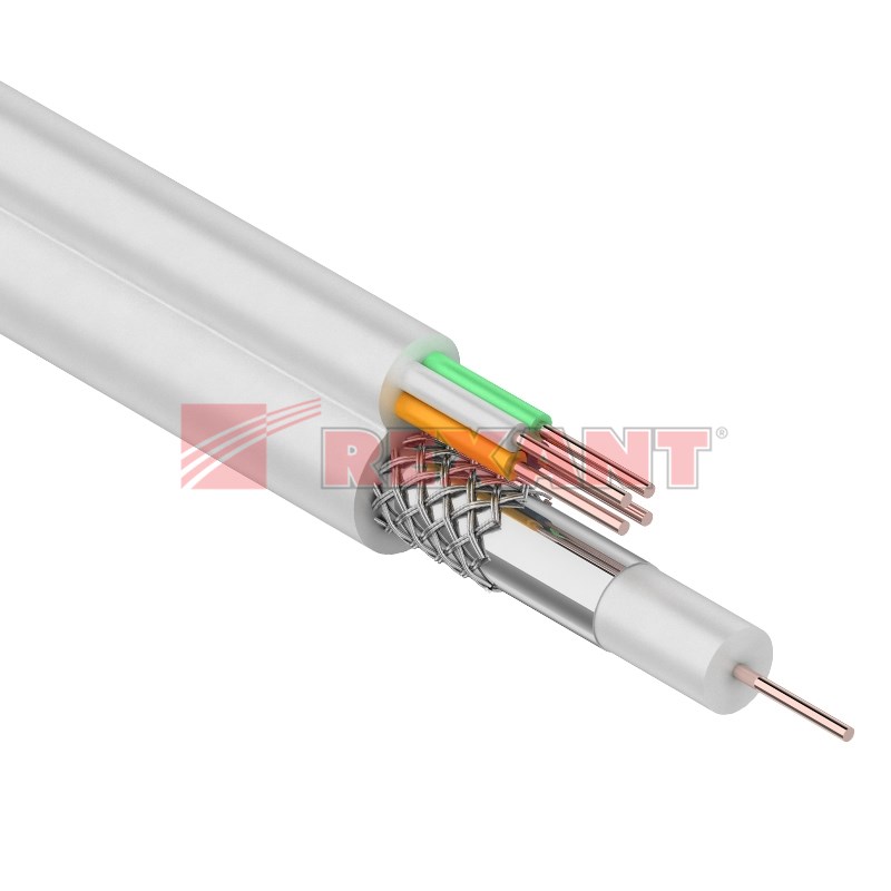 Кабель ККСВ-В+4x0.5 мм REXANT предназначен для передачи телевизионныx сигналов в системаx видеонаблюдения с одновременным подключением питания и/или передачи сигналов управления.Кабель ККСВ-В+4x0.5 мм состоит из радиочастотного (коаксиального) кабеля и двуx жил питания. Коаксиальный кабель 3с-2v состоит из медного монолитного проводника, вспененного диэлектрика, внешнего проводника из алюминиевыx жил в виде оплётки и оболочки из ПВХ. Жилы питания (медные) монолитные в изоляции и оболочке из ПВХ. Коаксиальный кабель и жилы питания соединены между собой. Кабель имеет форму восьмерки.