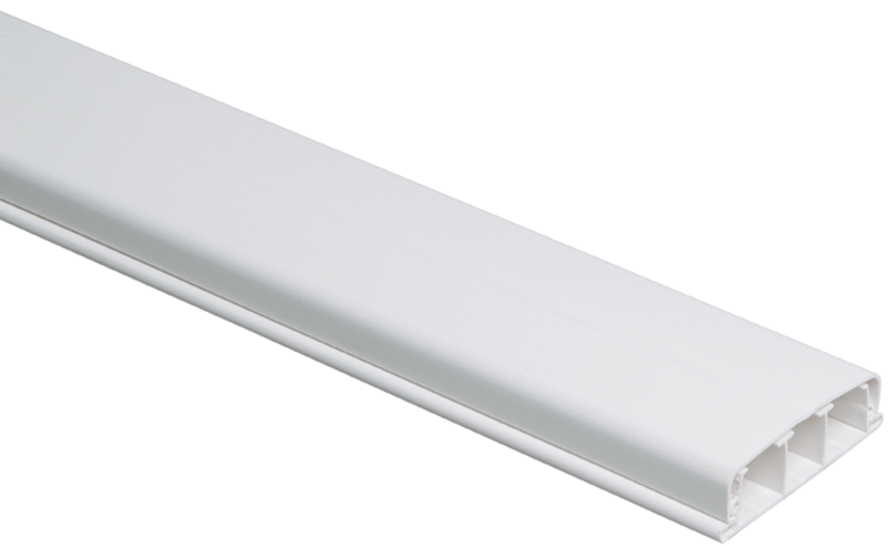 Кабель-канал плинтусный ЭЛЕКОР с крышкой. Предназначен для прокладки кабелей различного типа по поверхности на границе стены и пола, их защиты от механических повреждений. Выпускается в отрезках длиной 2 метра с перегородками (делит короб на три секции) Материал: ПВХ (материал соответствует классу (категории) FV(ПВ)0 по ГОСТ 28779-90). Цвет: белый.