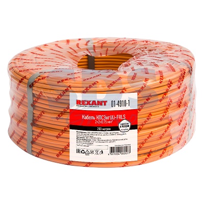 Кабель КПСЭнг(А)-FRLS 2x2x0,75 мм² REXANT симметричной парной скрутки, огнестойкий, не распространяющий горение при групповой прокладке, с пониженным дымо- и газовыделением.Кабель состоит из однопроволочного медного проводника, изоляции из огнестойкой керамизирующейся кремнийорганической резины, дренажного медного проводника, экрана из алюминиевой фольги и оболочки из ПВХ пластиката с пониженным дымо- и газовыделением. Кабель сохраняет работоспособность в условиях пожара в течение 180 минут. Номинальное напряжение тока до 300 В, частотой 50 Гц.