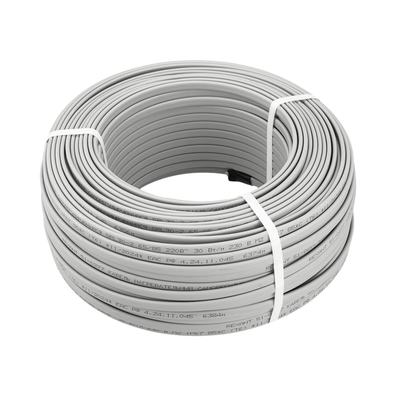 Кабель нагревательный саморегулирующийся 65°C 30Вт/м серый для обогрева труб REXANT