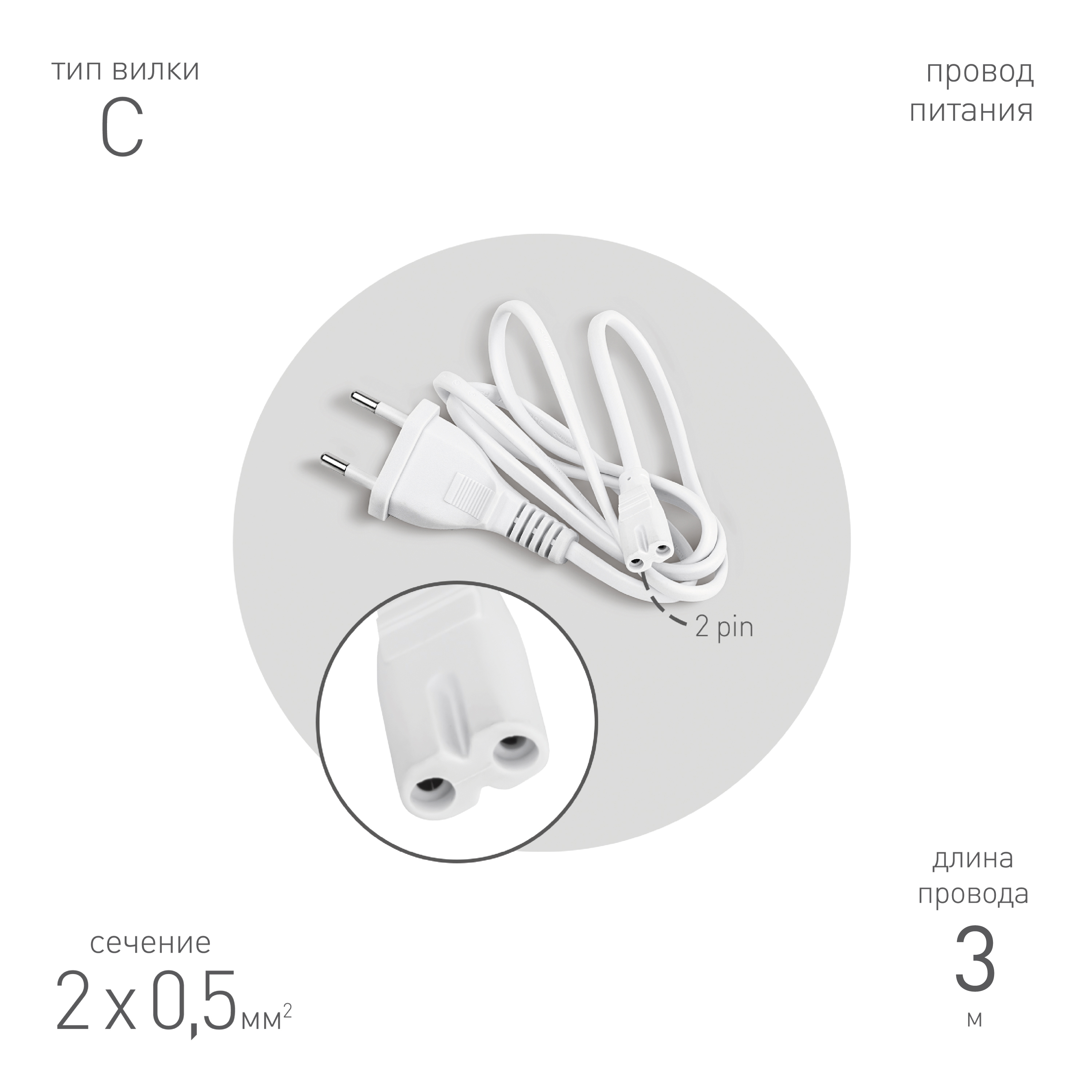 Прежде чем использовать кабель питания, ознакомьтесь с инструкцией по эксплуатации фитосветильника и соблюдайте все меры предосторожности при работе с электрооборудованием.