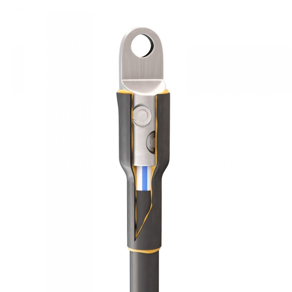 Предназначены для герметичного оконцевания кабелей и проводов:;с пластмассовой изоляцией (ПВХ/СПЭ);на напряжение до 1 кВ;Соответствует требованиям ГОСТ 13781.0-86;Комплект состоит из болтового наконечника с рядным расположением болтов и термоусаживаемой манжеты с клеевым слоем;Применимы для любого типа проводников: круглых и секторных, моножильных и многопроволочных;Каждый комплект является мультиразмерным и рассчитан на расширенный диапазон сечений кабеля;Крепление на жиле осуществляется методом завинчивания болтов со срывной головкой. Болтовые головки срываются при достижении установленного момента, обеспечивающего оптимальные механические и электрические свойства контактного соединения;Термоусаживаемые трубки с клеевым слоем и с коэффициентом усадки до 4:1 обеспечивают полную герметизацию и изоляцию соединений;Эксцентриковое отверстие под кабельную жилу в корпусе наконечника;Термоусаживаемая манжета устойчива к ультрафиолетовому излучению и погодно-климатическим условиям;При усадке клеевой слой расплавляется, заполняет все неровности микрорельефа и обеспечивает полную герметичность соединений;Рекомендованы для оснащения ремонтно-аварийных служб;Выпускается по ТУ 3599-006-97284872-2006;