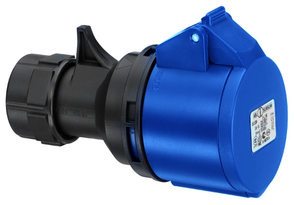 Кабельная розетка CEE, согласно IEC 60309, EN 60309, VDE 0623, ввод кабеля 1 x сверху 6 - 15 мм, степень защиты IP44, брызгозащищенное исполнение, номинальный ток 16 А, 3-пол., номинальное напряжение 230 В AC, 6 ч, син., крышка с упором для пальца, винтовые зажимы, система быстрого монтажа (turn2fix), также имеется с никелированными контактами