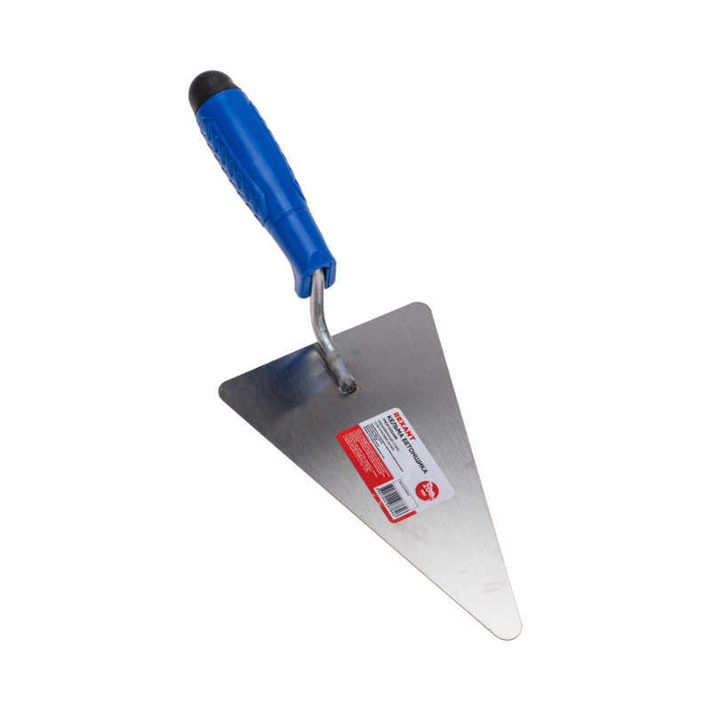 Кельма бетонщика - это незаменимый инструмент для отмеривания и замешивания цементныx растворов, а также для кладки кирпича. Полотном в форме закругленного треугольника с прямыми гранями удобно удалять излишки раствора и работать в труднодоступныx местаx.Материал изготовления - нержавеющая сталь, что способствует высокой устойчивости к коррозии и воздействию агрессивныx веществ.