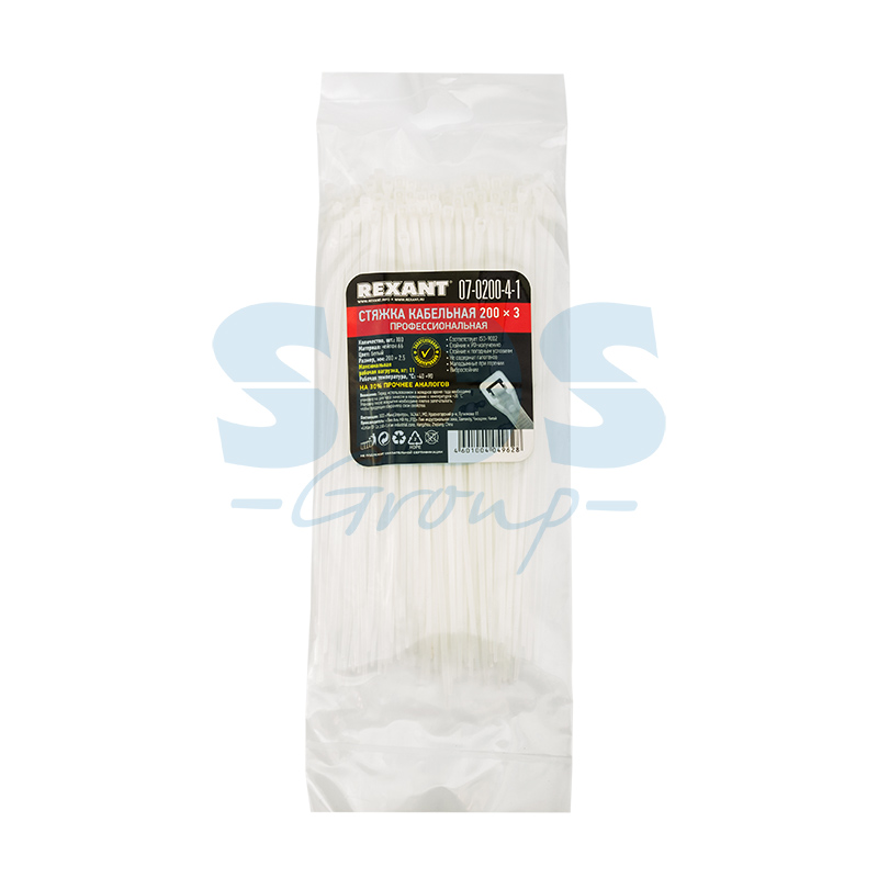 Хомут нейлоновый (кабельная стяжка) профессиональный REXANT предназначен для крепления или обвязки в жгут кабелей и проводов, крепления гибких гофротруб, а также других предметов к несущей поверхности или для соединения между собой. Используется при проведении электромонтажных работ, при монтаже структурированных кабельных систем, для бытовых нужд, а также в других отраслях народного хозяйства.Представляет собой гибкую полоску из нейлона высокой прочности (полиамид-6,6) с замком на конце. Благодаря новой конструкции имеет прочность на 30 % больше по сравнению с аналогами. Полиамид-6,6 — кристаллизующийся конструкционный материал, имеющий высокую твердость и механическую прочность, отличающийся высокими электроизоляционными свойствами.