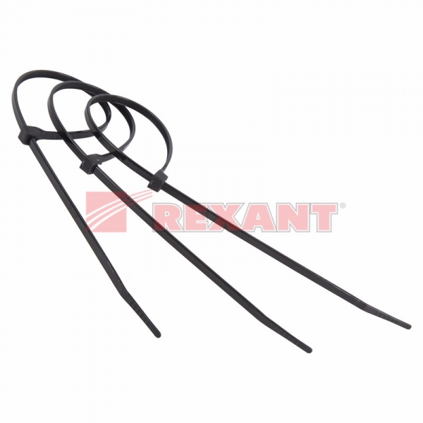 Хомут нейлоновый (кабельная стяжка) профессиональный REXANT предназначен для крепления или обвязки в жгут кабелей и проводов, крепления гибких гофротруб, а также других предметов к несущей поверхности или для соединения между собой. Используется при проведении электромонтажных работ, при монтаже структурированных кабельных систем, для бытовых нужд, а также в других отраслях народного хозяйства.Представляет собой гибкую полоску из нейлона высокой прочности (полиамид-6,6) с замком на конце. Благодаря новой конструкции имеет прочность на 30 % больше по сравнению с аналогами. Полиамид-6,6 — кристаллизующийся конструкционный материал, имеющий высокую твердость и механическую прочность, отличающийся высокими электроизоляционными свойствами.