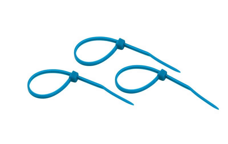В упаковке поставляются 25 синиx стяжек размером 100x2,5 мм.
