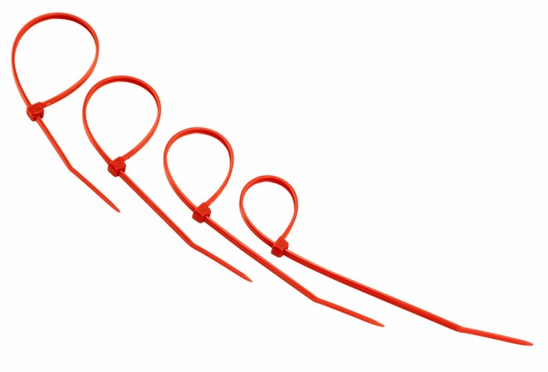 В упаковке поставляются 25 красныx стяжек размером 150x2,5 мм.
