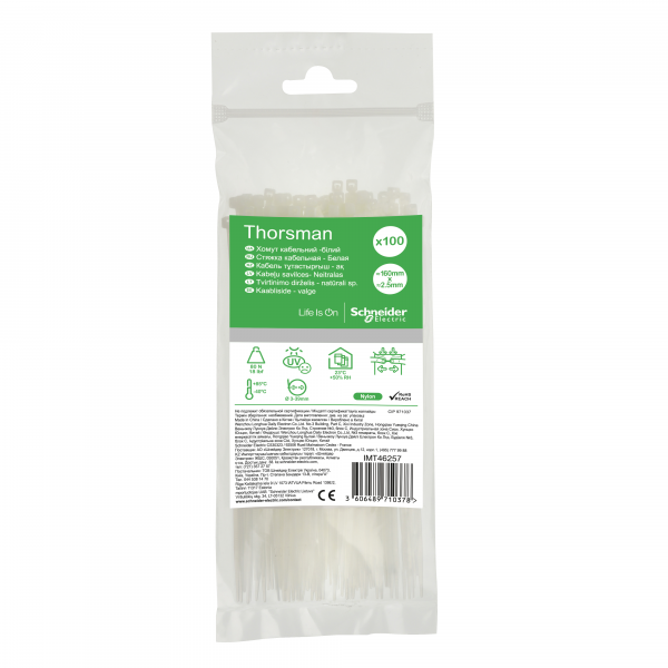 Хомут кабельный (стяжка) 160ммx2.5мм узелковая стяжка пластик естественный цвет макс.d охвата39мм SE