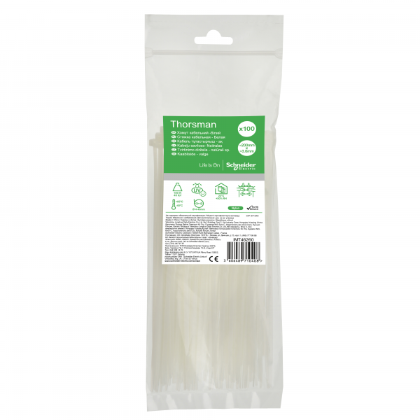 Хомут кабельный (стяжка) 200ммx3.6мм узелковая стяжка пластик естественный цвет макс.d охвата46мм SE