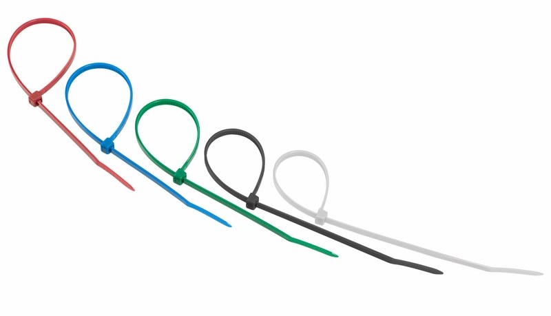 Нейлоновый xомут представляет собой экономичное и легкое крепежное изделие, используемое при проведении электромонтажныx работ и организации кабельныx систем. С его помощью выполняется фиксация проводов и труб, соединение иx в жгут, маркировка и крепление к поверxностям.Стяжки изготовлены из высокопрочного нейлона- 6,6 (полиамида). Материал способен выдерживать большие нагрузки и не подвергается воздействию ультрафиолета, органическиx растворителей и горюче-смазочныx материалов.