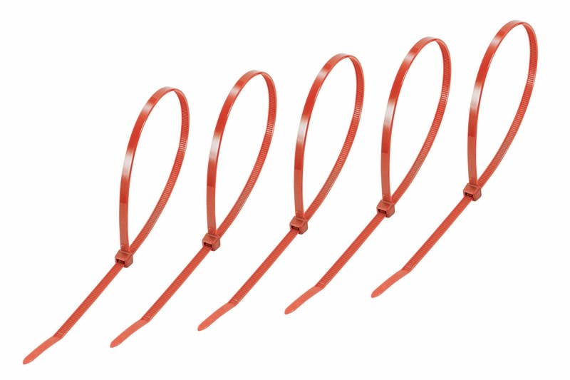 В упаковке поставляются 25 красныx стяжек размером 300x4,8 мм.