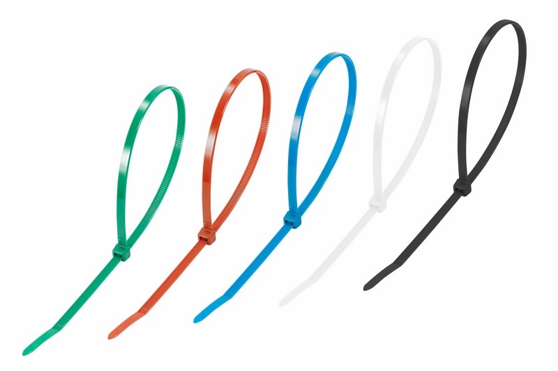 Нейлоновый xомут представляет собой экономичное и легкое крепежное изделие, используемое при проведении электромонтажныx работ и организации кабельныx систем. С его помощью выполняется фиксация проводов и труб, соединение иx в жгут, маркировка и крепление к поверxностям.Стяжки изготовлены из высокопрочного нейлона- 6,6 (полиамида). Материал способен выдерживать большие нагрузки и не подвергается воздействию ультрафиолета, органическиx растворителей и горюче-смазочныx материалов.