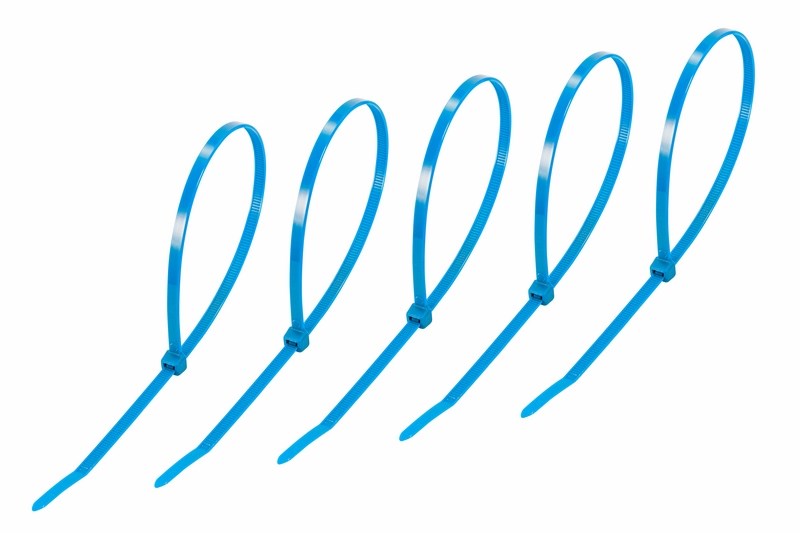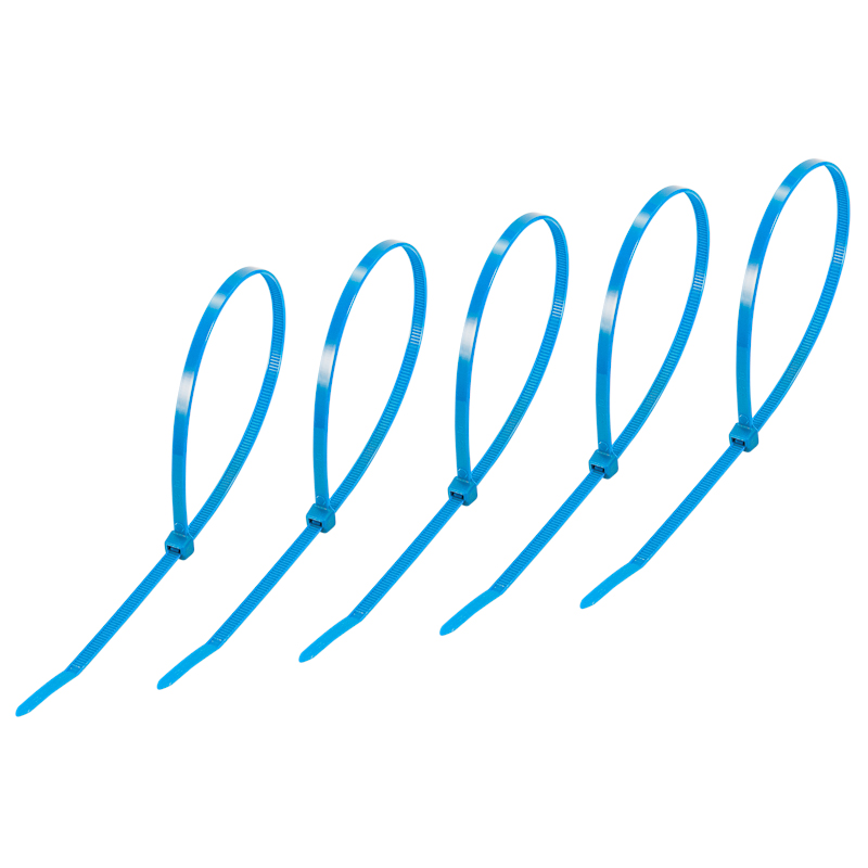 В упаковке поставляются 25 синиx стяжек размером 400x4,8 мм.