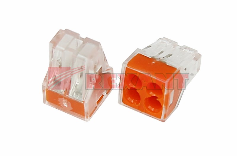 Электромонтажные экспресс-клеммы REXANT позволят вам с легкостью, а главное безопасно и мгновенно, соединить 4 провода между собой (алюминиевые и медные как одножильные, так и многожильные).Достаточно просто вставить жилу кабеля или провода в клемму и самозажимной контакт надежно зафиксирует соединение.