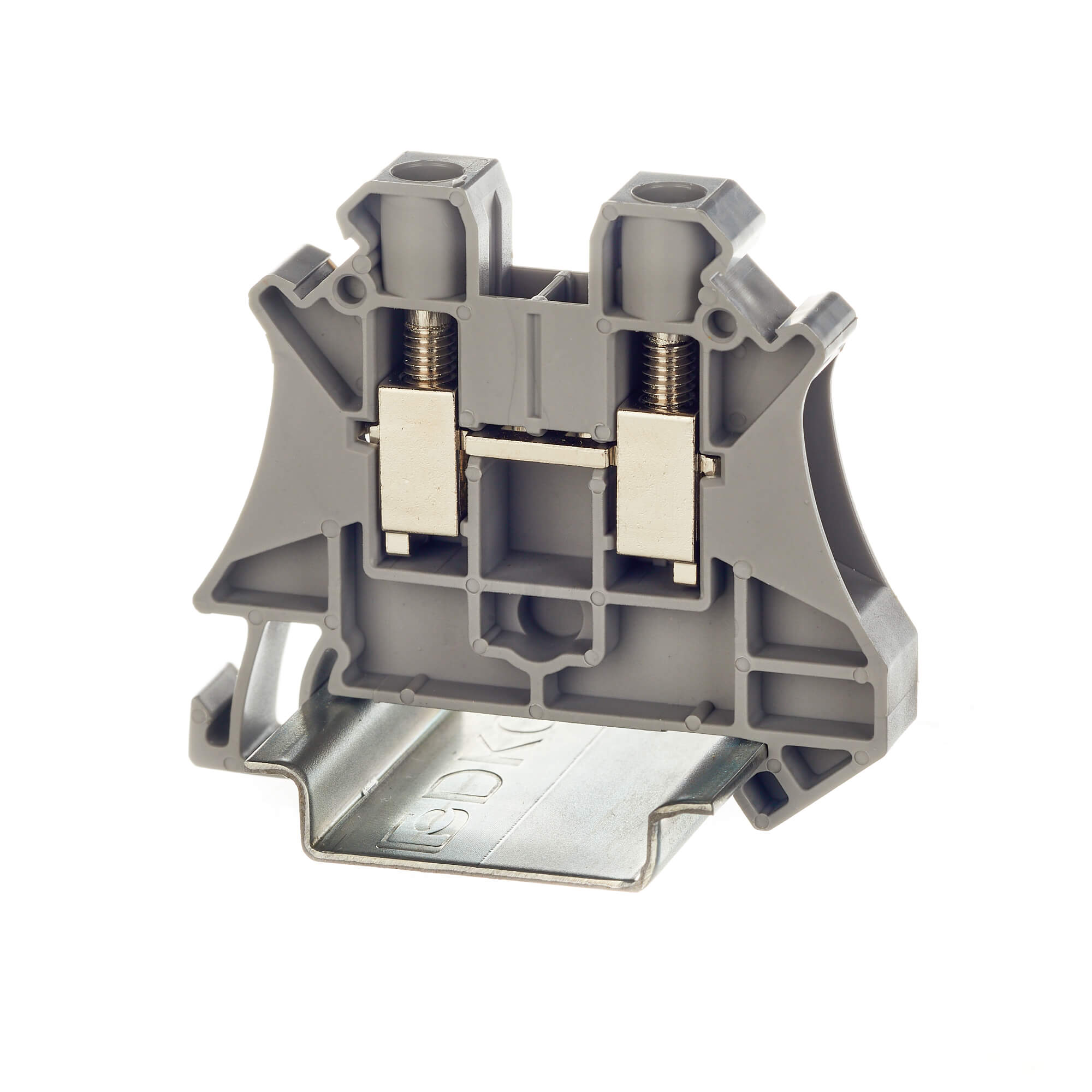 Проходная клемма с винтовым зажимом предназначена для соединения двух проводников. Монтаж на DIN-рейку OMEGA. Температура эксплуатации от -40 до +105°C. Корпус выполнен из ПА 6.6 с классом горючести V0 UL-94. Серый цвет, 2 точки подключения, 6 мм². 2 канала для вставных перемычек. Габариты (В×Ш×Г) 47,5×53×8,2 мм.