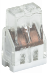 Строительно-монтажная клемма серии 772 в прозрачном корпусе, без контактной пасты, предназначена для однократного подключения одножильных/ многожильных медных проводников.