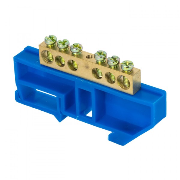 Шина "0" N (8x12мм) 6 отв. латунь синий изолятор на DIN-рейку розн. стикер EKF