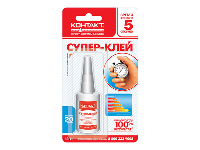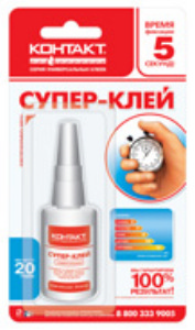 – Однокомпонентный моментальный клей– Клеит быстро, прочно, точно