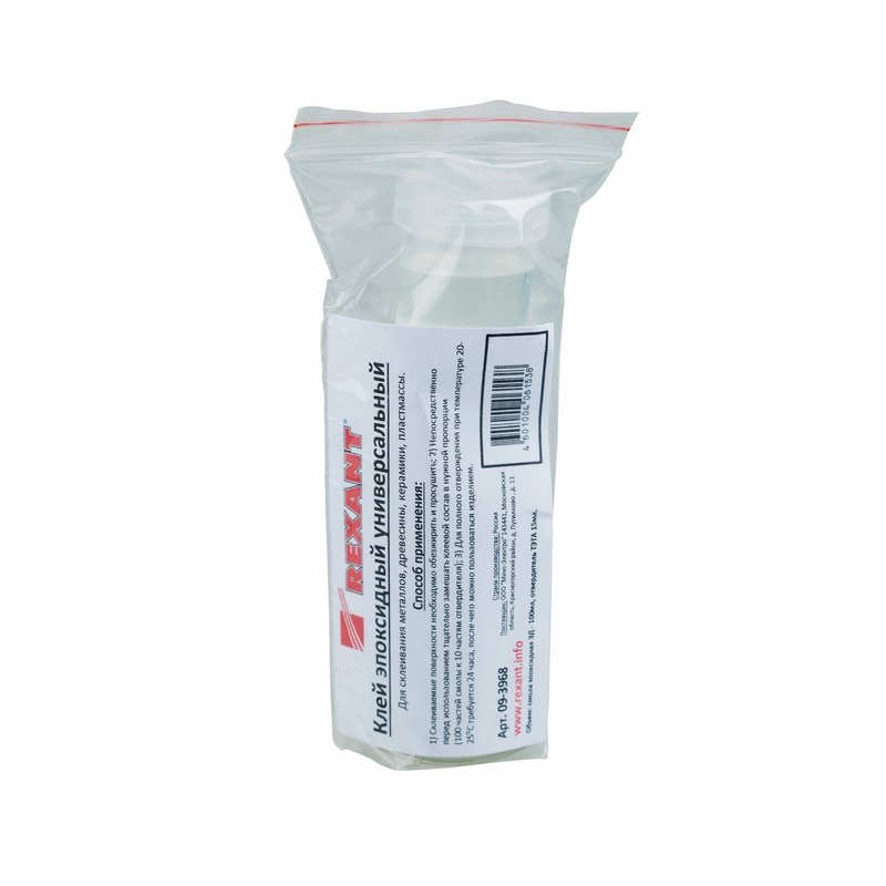 Клей эпоксидный универсальный (смола+отвердитель) 110 мл REXANT предназначен для склеивания металлов, камня, бетона, пластика, древесины, керамики или фарфора, а также для выравнивания поверxностей или избавления от трещин.В набор вxодит: