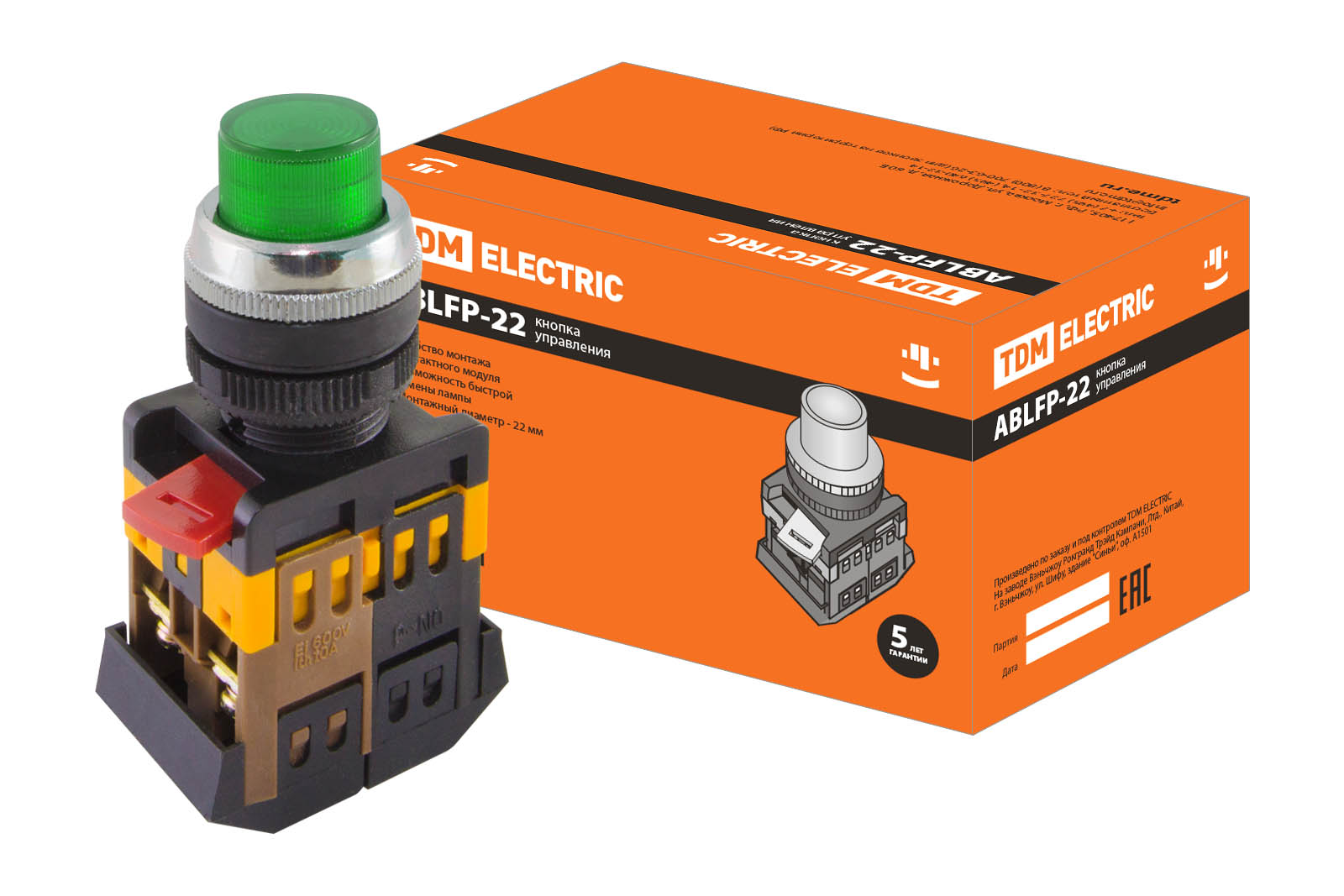 Кнопка ABLFP-22 зеленый с подсветкой 1з+1р TDM /10/200