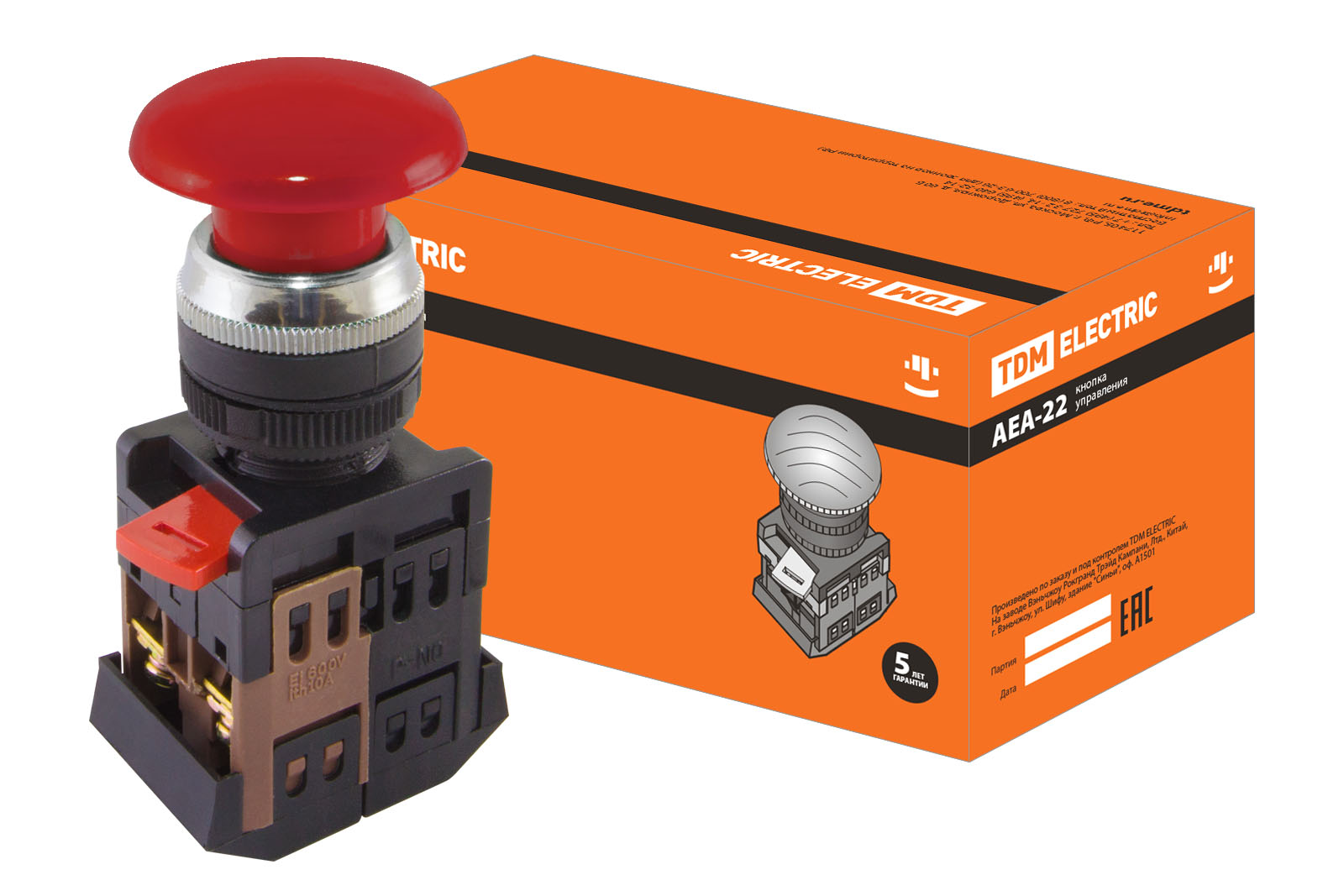 Кнопка AEА-22 "Грибок" красный d22мм 1з+1р TDM /10/200