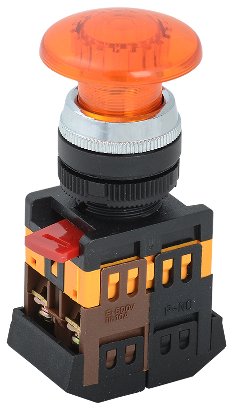 Кнопка AELA-22 "Грибок" желтый d22мм неон/240В 1з+1р GENERICA