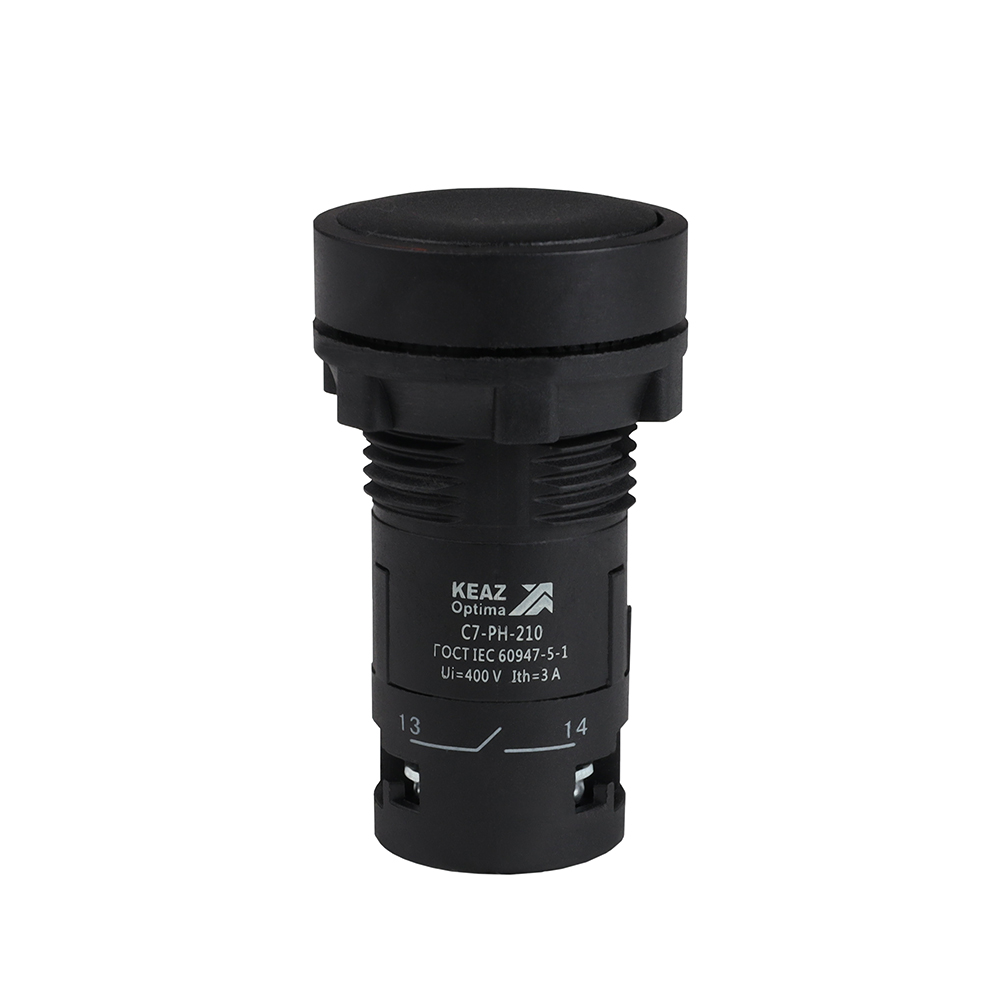 Кнопочный выкл. в сборе плоск., 1 упр. элемент черный 1НО 0НЗ 1переключ. IP40 с фиксацией, КЭАЗ