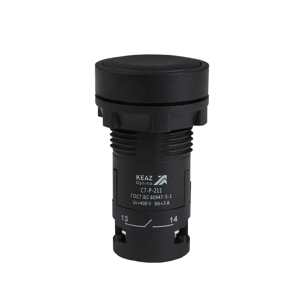 Кнопочный выкл. в сборе плоск., 1 упр. элемент черный 1НО 1НЗ 2переключ. IP40 КЭАЗ