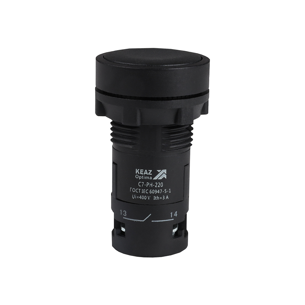 Кнопочный выкл. в сборе плоск., 1 упр. элемент черный 2НО 0НЗ 2переключ. IP40 с фиксацией, КЭАЗ