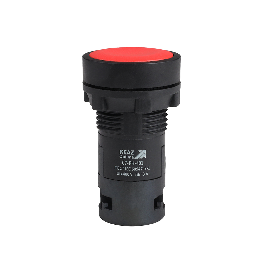Кнопочный выкл. в сборе плоск., 1 упр. элемент красный 0НО 1НЗ 1переключ. IP40 с фиксацией, КЭАЗ