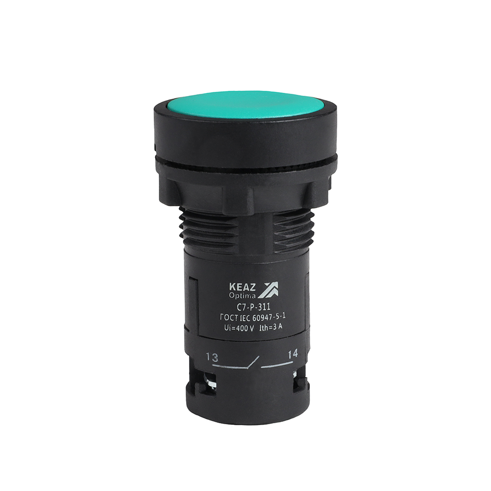 Кнопочный выкл. в сборе плоск., 1 упр. элемент зеленый 1НО 1НЗ 2переключ. IP40 КЭАЗ