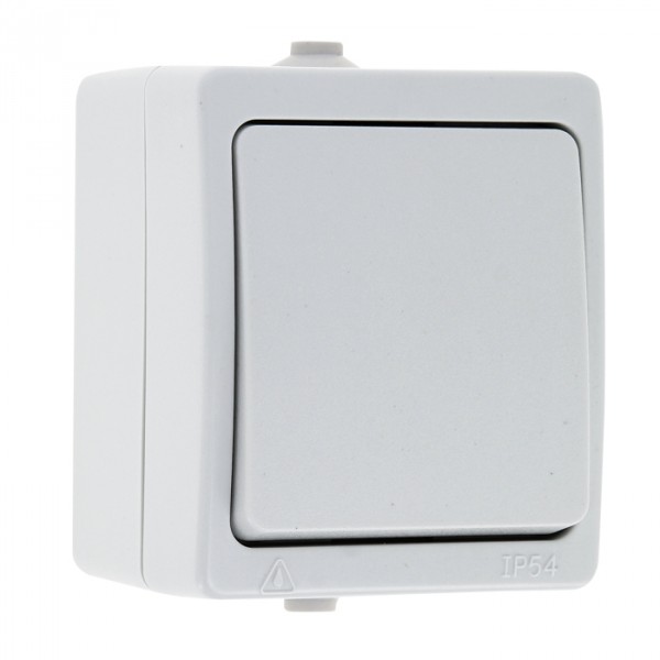 Кнопочный выключатель в сборе одиночный накладной 10А 230В пластик белый IP54 EKF Венеция Выключатели