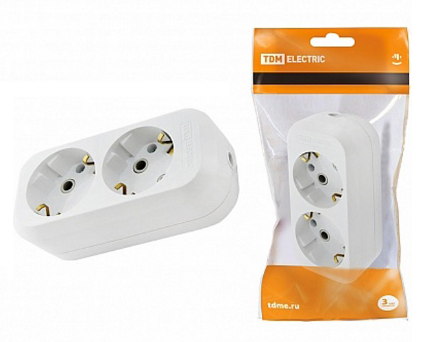 Колодка 2 гн с/з белая TDM /20/120